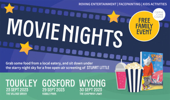 Central Coast Council is encouraging the community to attend a free outdoor movie night at the welcoming town centres of Toukley, Gosford and Wyong across the Coast these school holidays.